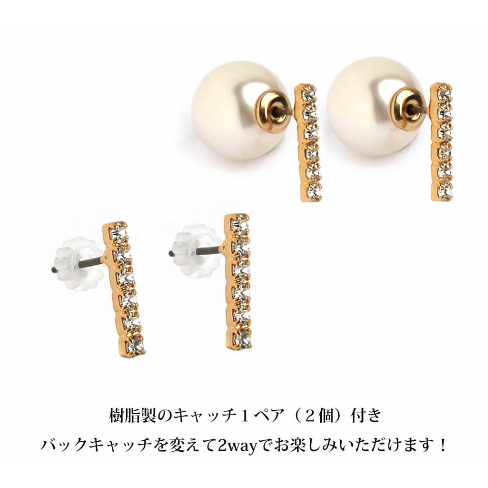 日本製 2way ラインストーンバー&パールキャッチピアス