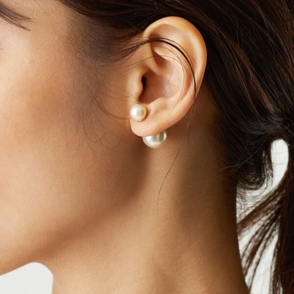 日本製 ダブルパールピアス パール&パールキャッチ